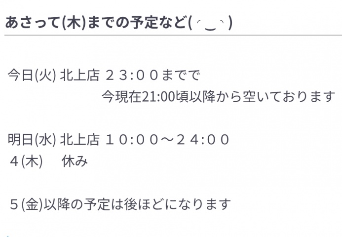 今お店にいるよ & 26(金)までの予定