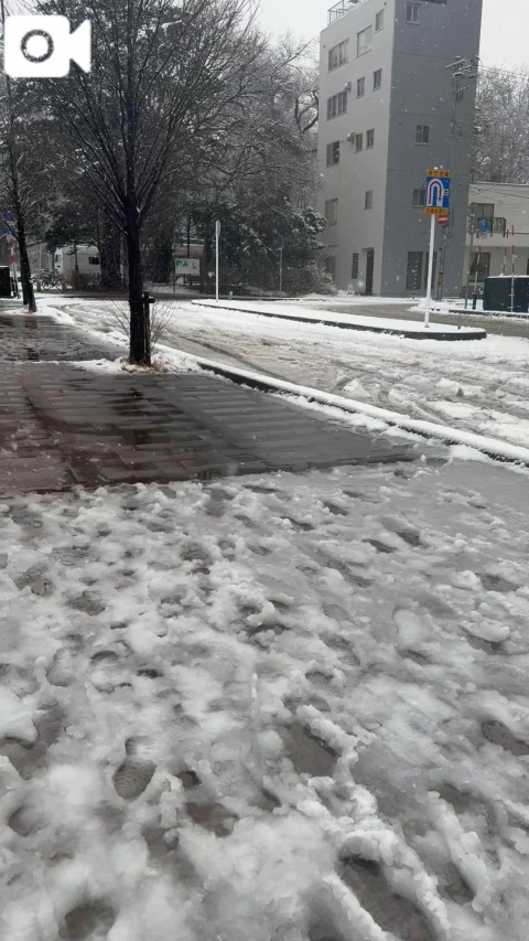 道路はべちゃべちゃで寒いのとべちゃべちゃ