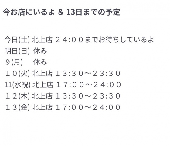 13日、今お店にいるよ